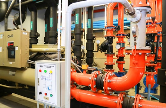 Design, supply and installation of chillers, plant room, plumbing works and firefighting equipment.